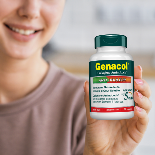 Chez Genacol, nous sommes fiers d’offrir aux personnes qui souffrent de douleurs articulaires causées par l’arthrose des solutions concrètes pour lutter contre celles-ci. C’est grâce à nos suppléments naturels qui contiennent notre Collagène AminoLock breveté.
